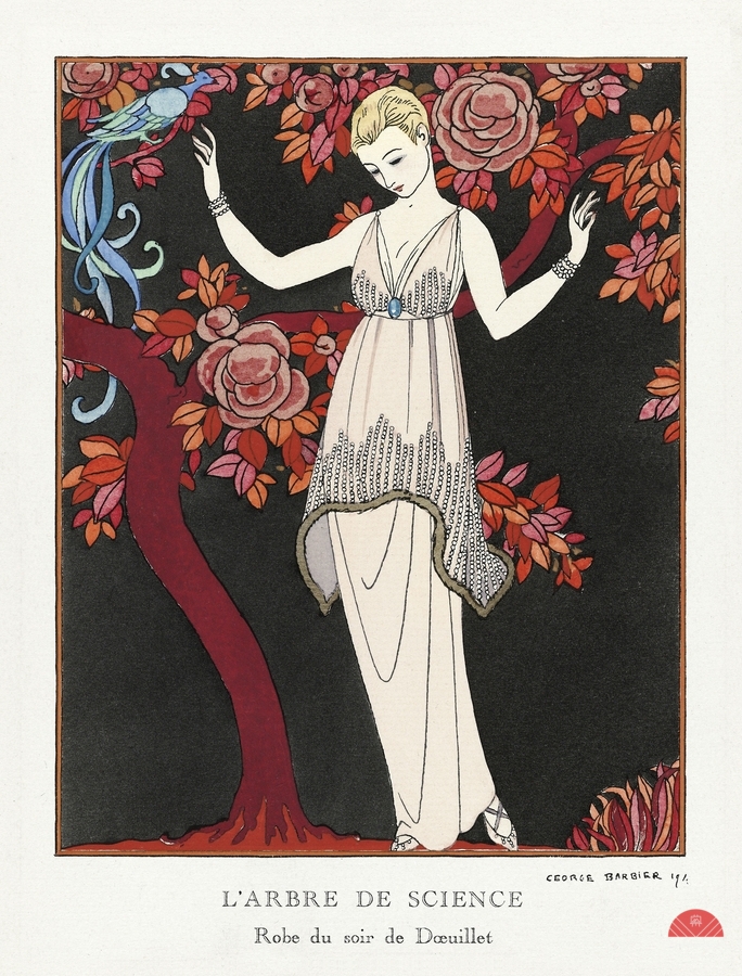 Get this artwork "LArbre de science: Robe du soir de Doeuillet 1914 fashion illustration by George Barbier. " in a framed print.