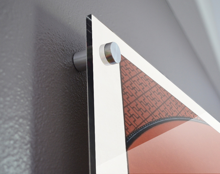 Printed to the edge - Ready to hang - provided with 4 premium polished aluminum stand off ( wall screws and mounting hardware provided ) We suggest a thicker 3/16" acrylic for any size over 42 inches to guarantee a straight acrylic, without curvature