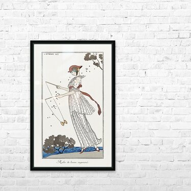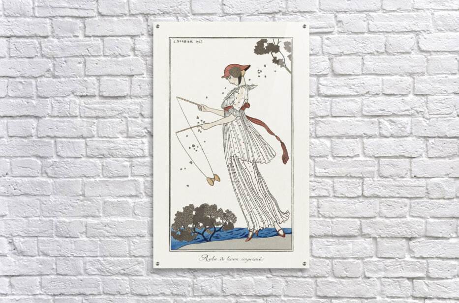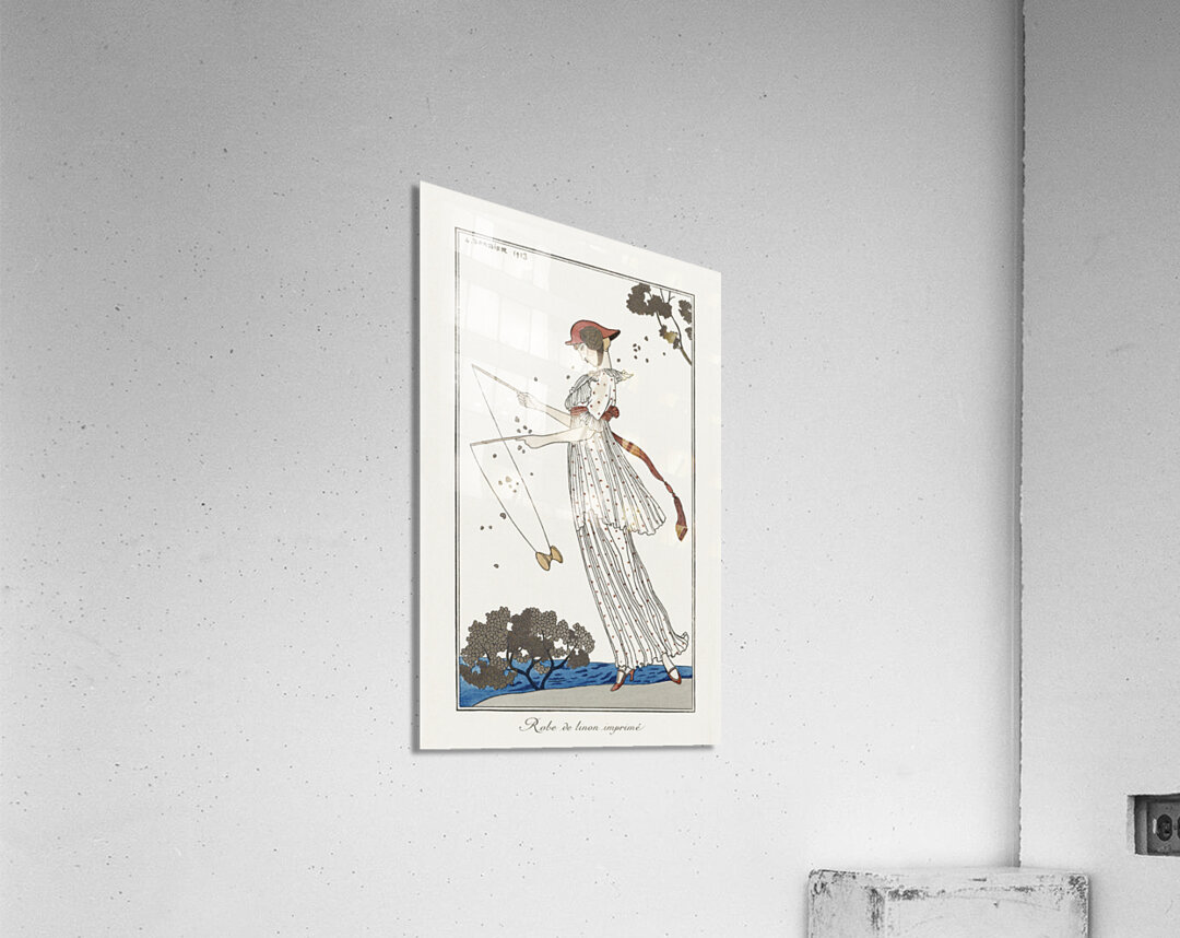 Get this artwork "Costumes Parisiens: Robe de linon imprimé from Journal des Dames et des Modes 1913 fashion illustration by George Barbier. " in a framed print.
