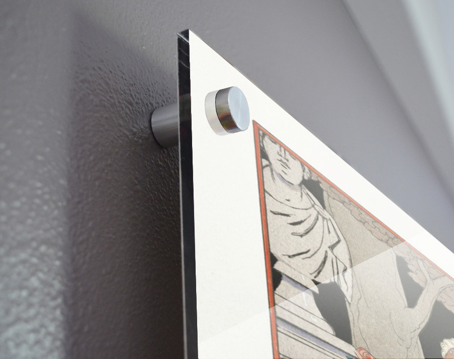 Printed to the edge - Ready to hang - provided with 4 premium polished aluminum stand off ( wall screws and mounting hardware provided ) We suggest a thicker 3/16" acrylic for any size over 42 inches to guarantee a straight acrylic, without curvature