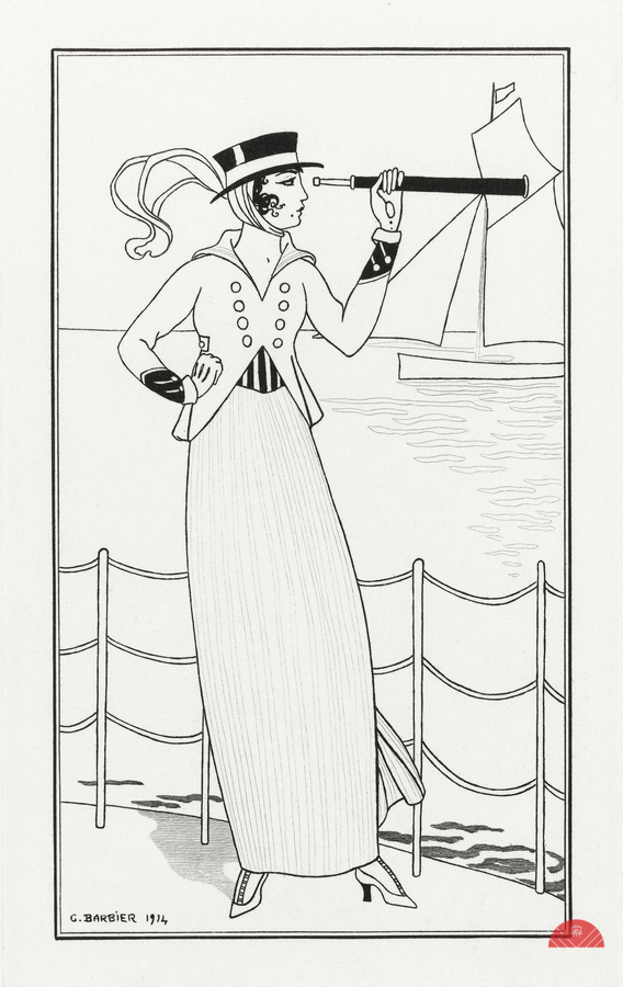 Costumes Parisiens 1914 fashion illustration by George Barbier.