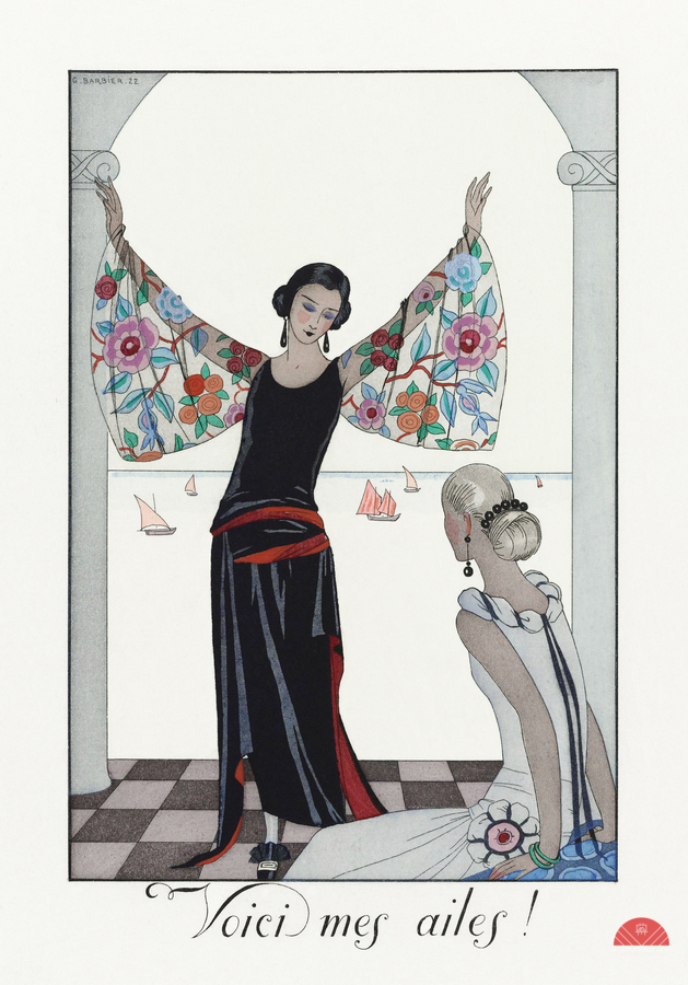 Voici mes ailes! 1923 fashion illustration by George Barbier.
