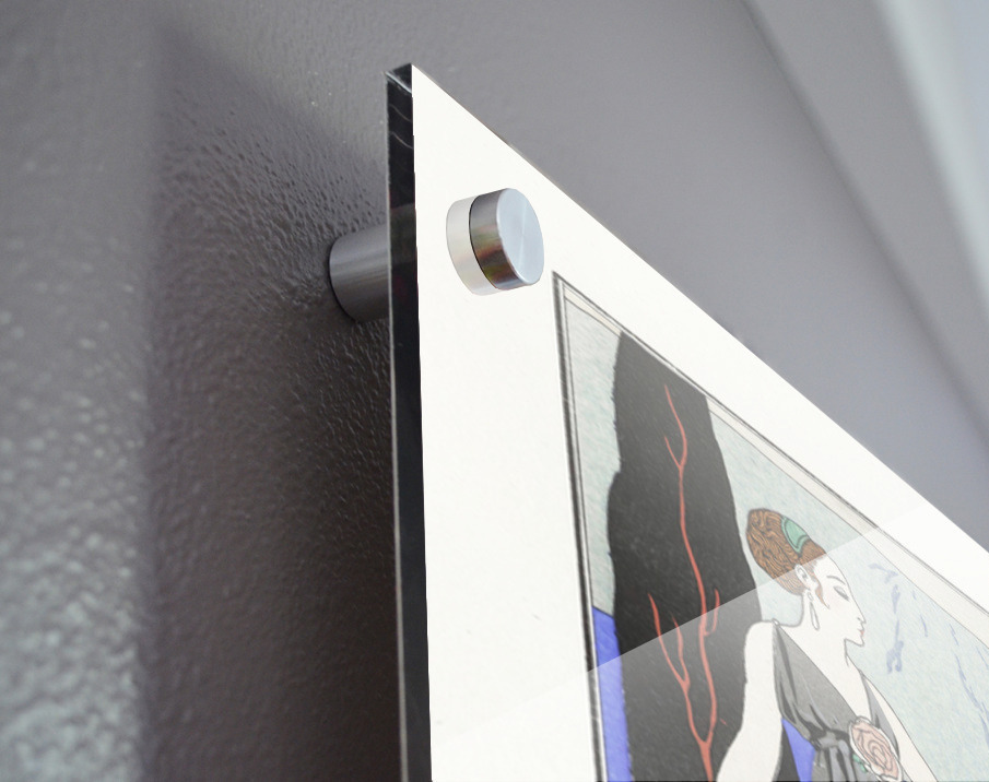 Printed to the edge - Ready to hang - provided with 4 premium polished aluminum stand off ( wall screws and mounting hardware provided ) We suggest a thicker 3/16" acrylic for any size over 42 inches to guarantee a straight acrylic, without curvature
