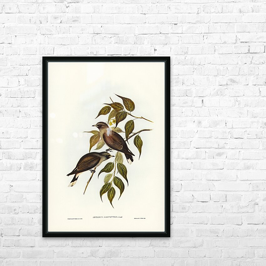 White-vented Wood Swallow Artamus albiventris illustrated by Elizabeth Gould 1804–1841 for John Gould’s 1804-1881 Birds of Australia  Picture Frame Printing