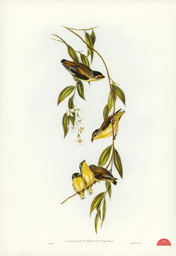 Striated Pardalote Pardalotus striatus illustrated by Elizabeth Gould 1804–1841 for John Gould’s 1804-1881 Birds of Australia