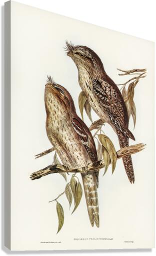 Podargus Phalaenoides and Moth-plumaged Podargus Gould Iillustrated by Elizabeth Gould 1804–1841 for John Gould’s 1804-1881 Birds of Australia  Canvas print