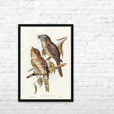 Podargus Phalaenoides and Moth-plumaged Podargus Gould Iillustrated by Elizabeth Gould 1804–1841 for John Gould’s 1804-1881 Birds of Australia  Picture Frame Printing