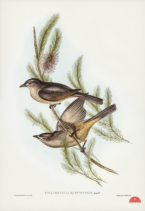 BUFF-BELLIED SHRIKE-THRUSH COLLURICINCLA RUFIVENTRIS ILLUSTRATED BY ELIZABETH GOULD 1804–1841 FOR JOHN GOULD’S 1804-1881 BIRDS OF AUSTRALIA
