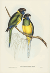 Bauers Parrakeet Platycercus Bauerii illustrated by Elizabeth Gould 1804–1841 for John Gould’s 1804-1881 Birds of Australia