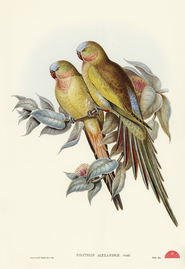 ABOUT THIS ARTWORK: THE PRINCESS OF WALES&39S PARAKEET POLYTELIS ALEXANDRAE ILLUSTRATED BY ELIZABETH GOULD 1804–1841 FOR JOHN GOULD’S 1804-1881 BIRDS OF AUSTRALIA