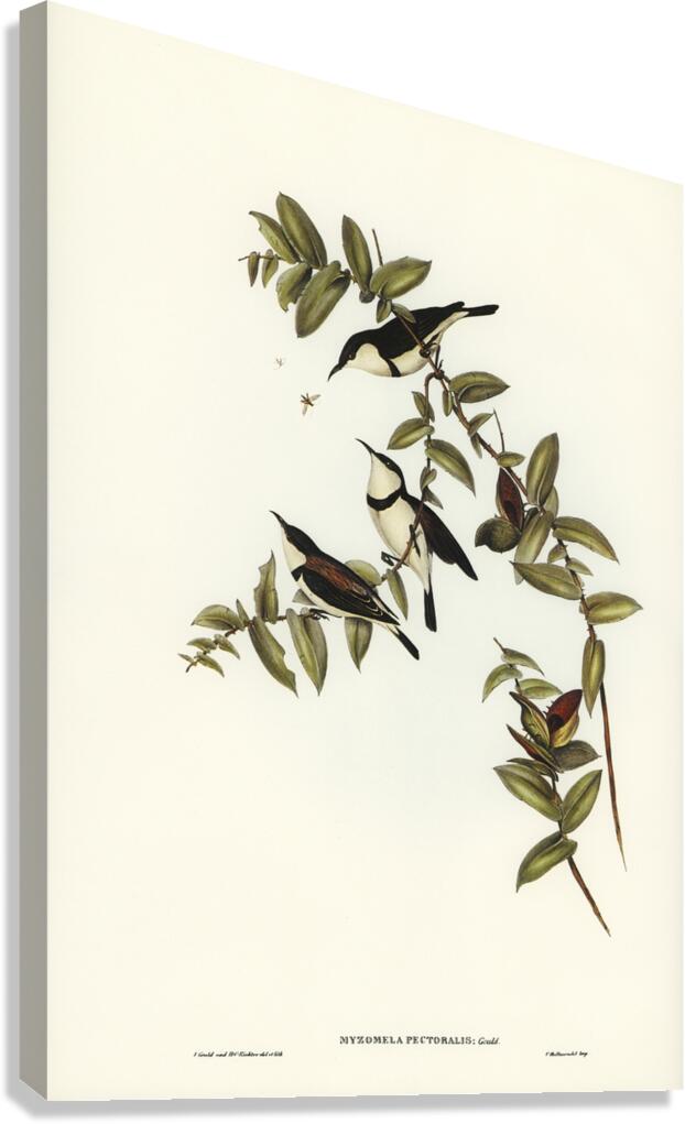 Banded Honey-eater Myzomela pectoralis illustrated by Elizabeth Gould 1804–1841 for John Gould’s 1804-1881 Birds of Australia  Canvas print