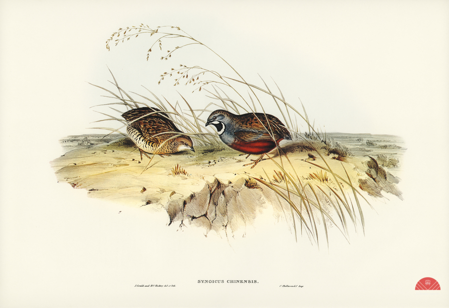 Chinese Quail Synoicus Chinensis illustrated by Elizabeth Gould 1804–1841 for John Gould’s 1804-1881 Birds of Australia