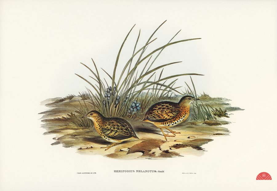 Black-backed Hemipode Hemipodius melanotus illustrated by Elizabeth Gould 1804–1841 for John Gould’s 1804-1881 Birds of Australia