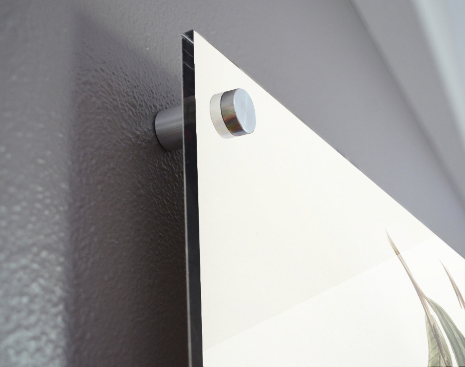 Printed to the edge - Ready to hang - provided with 4 premium polished aluminum stand off ( wall screws and mounting hardware provided ) We suggest a thicker 3/16" acrylic for any size over 42 inches to guarantee a straight acrylic, without curvature
