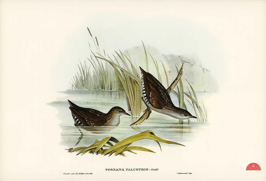 Water Crake Porzana palustris illustrated by Elizabeth Gould 1804–1841 for John Gould’s 1804-1881 Birds of Australia
