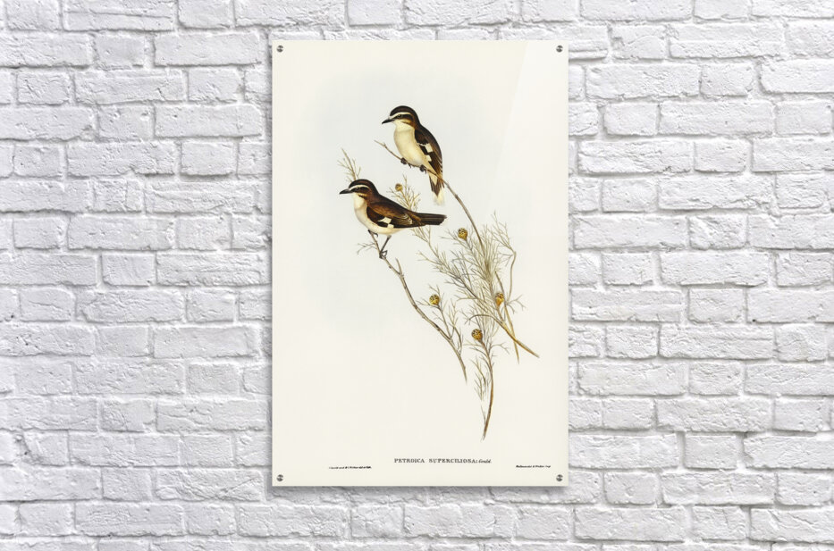 White-eyebrowed Robin Petroica superciliosa illustrated by Elizabeth Gould 1804–1841 for John Gould’s 1804-1881 Birds of Australia  Picture Frame Printing