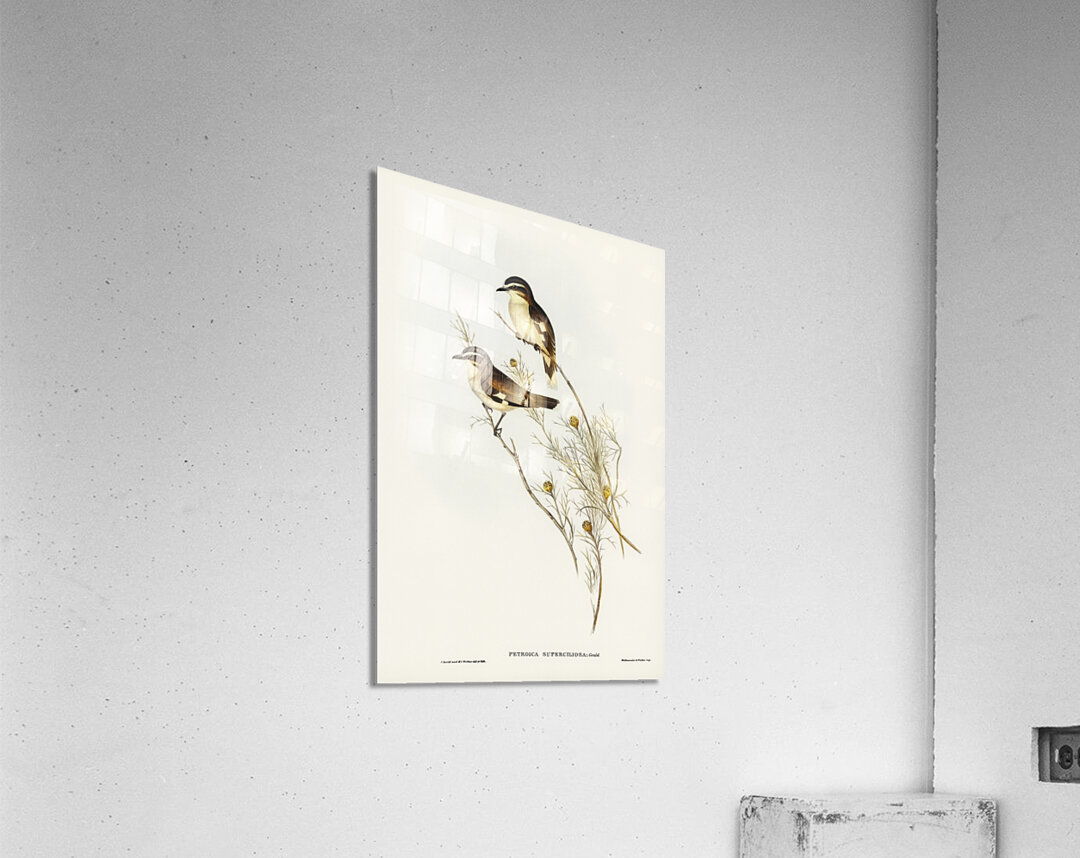 Get this artwork "White-eyebrowed Robin Petroica superciliosa illustrated by Elizabeth Gould 1804–1841 for John Gould’s 1804-1881 Birds of Australia " in a framed print.