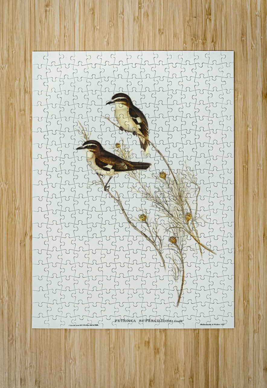 White-eyebrowed Robin Petroica superciliosa illustrated by Elizabeth Gould 1804–1841 for John Gould’s 1804-1881 Birds of Australia  IStockHistory com Puzzle printing