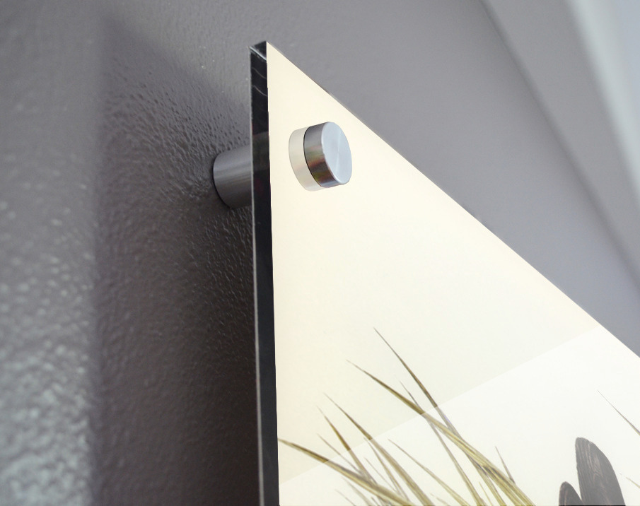 Printed to the edge - Ready to hang - provided with 4 premium polished aluminum stand off ( wall screws and mounting hardware provided )