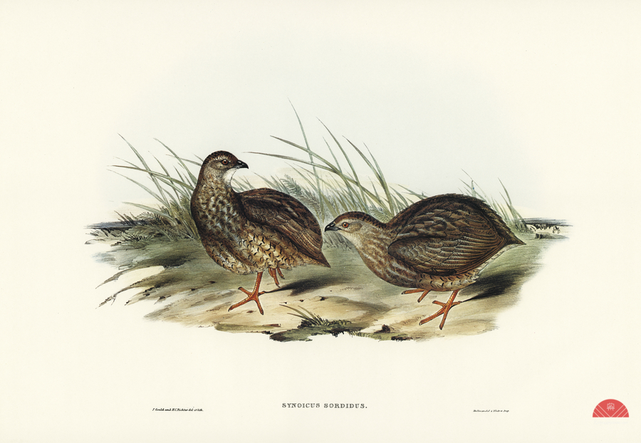 Sombre Partridge Synoicus sordidus illustrated by Elizabeth Gould 1804–1841 for John Gould’s 1804-1881 Birds of Australia