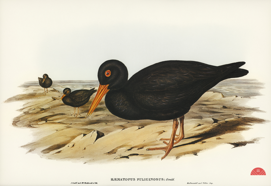 SOOTY OYSTER-CATCHER HAEMATOPUS FULIGINOSUS ILLUSTRATED BY ELIZABETH GOULD 1804–1841 FOR JOHN GOULD’S 1804-1881 BIRDS OF AUSTRALIA