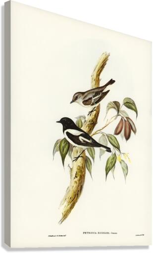 Pied Robin Petroica bicolor Swains illustrated by Elizabeth Gould 1804–1841 for John Gould’s 1804-1881 Birds of Australia  Canvas print