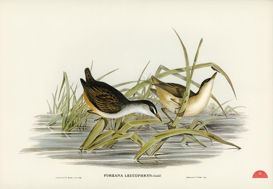 White-eyebrowed Water Crake Porzana leucophrys illustrated by Elizabeth Gould 1804–1841 for John Gould’s 1804-1881 Birds of Australia