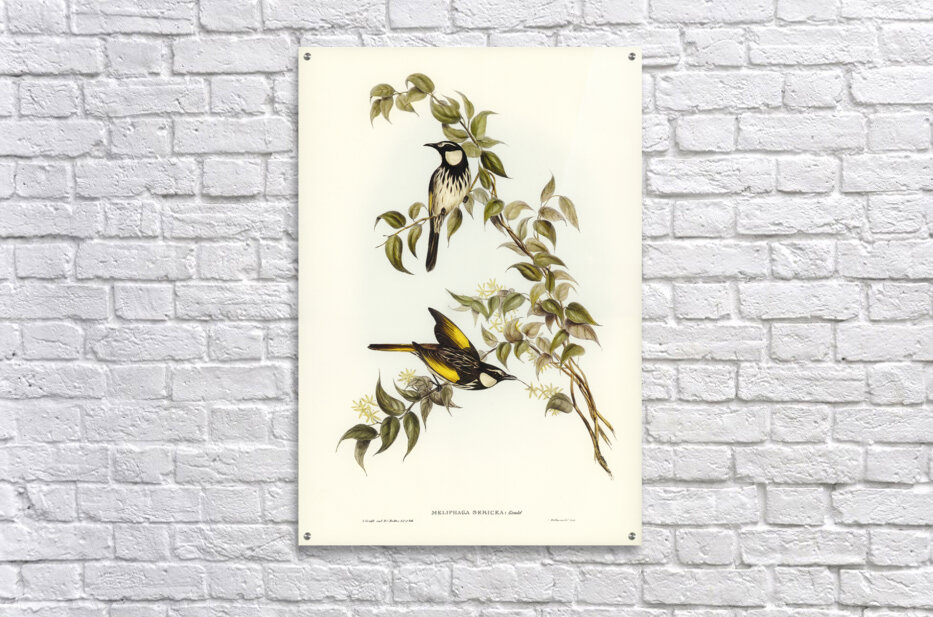 Get this artwork "White-cheeked Honey-eater Meliphaga sericea illustrated by Elizabeth Gould 1804–1841 for John Gould’s 1804-1881 Birds of Australia " in a framed print.