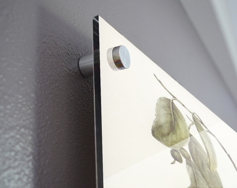 Printed to the edge - Ready to hang - provided with 4 premium polished aluminum stand off ( wall screws and mounting hardware provided ) We suggest a thicker 3/16" acrylic for any size over 42 inches to guarantee a straight acrylic, without curvature