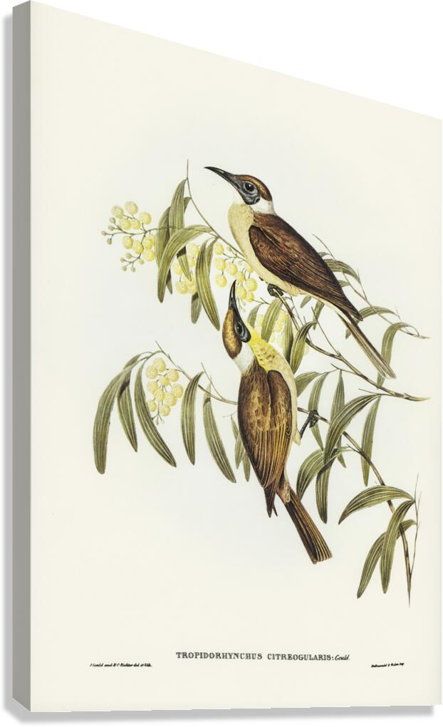 Yellow-throated Friar Bird Tropidorhynchus citreogularis illustrated by Elizabeth Gould 1804–1841 for John Gould’s 1804-1881 Birds of Australia  Canvas print