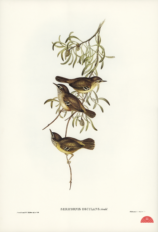 Allied Sericornis Ericornis osculans illustrated by Elizabeth Gould 1804–1841 for John Gould’s 1804-1881 Birds of Australia