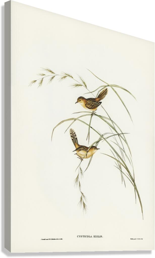 Exile Warbler Cysticola exilis illustrated by Elizabeth Gould 1804–1841 for John Gould’s 1804-1881 Birds of Australia  Canvas print