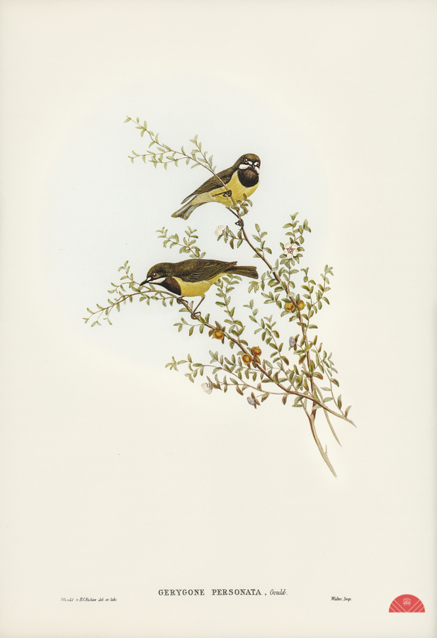 Masked Gerygone Gerygone personata illustrated by Elizabeth Gould 1804–1841 for John Gould’s 1804-1881 Birds of Australia