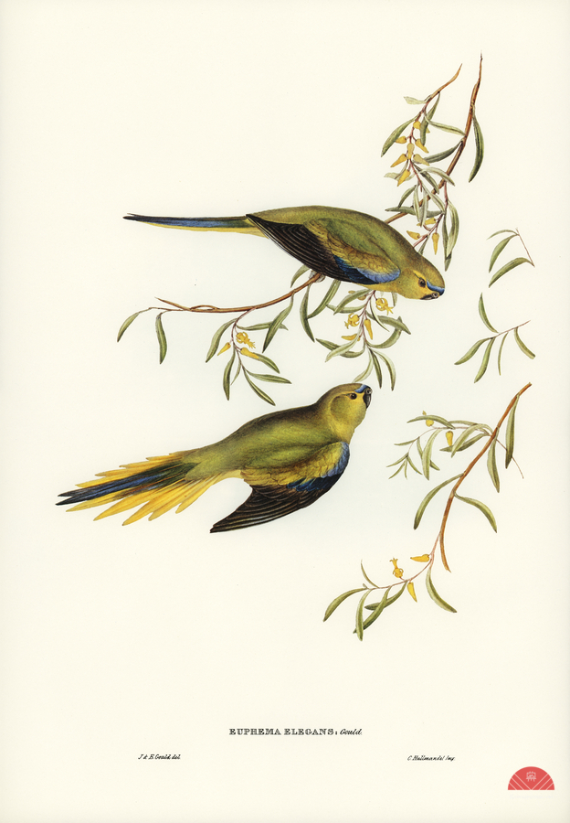 ELEGANT GRASS-PARAKEET EUPHEMA ELEGANS ILLUSTRATED BY ELIZABETH GOULD 1804–1841 FOR JOHN GOULD’S 1804-1881 BIRDS OF AUSTRALIA