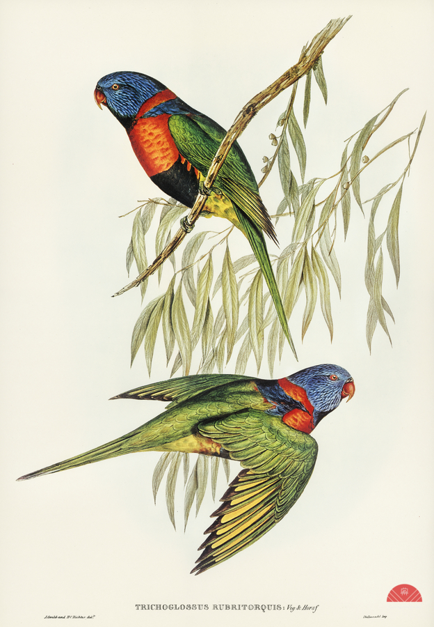 Red-collared Lorikeet Trichoglossus rubritorquis illustrated by Elizabeth Gould 1804–1841 for John Gould’s 1804-1881 Birds of Australia