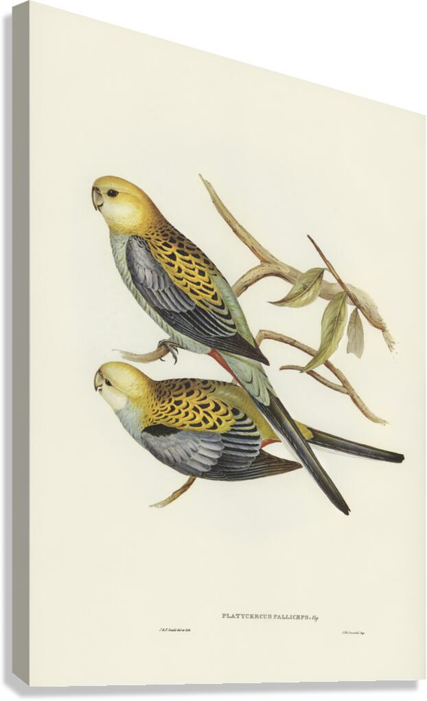 Pale-headed Parakeet Platycercus palliceps illustrated by Elizabeth Gould 1804–1841 for John Gould’s 1804-1881 Birds of Australia  Canvas print
