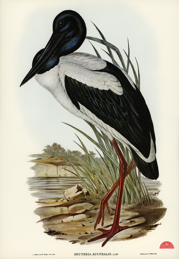 Australian Mycteria Mycteria Australis illustrated by Elizabeth Gould 1804–1841 for John Gould’s 1804-1881 Birds of Australia