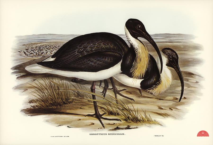 STRAW-NECKED IBIS GERONTICUS SPINICOLLIS ILLUSTRATED BY ELIZABETH GOULD 1804–1841 FOR JOHN GOULD’S 1804-1881 BIRDS OF AUSTRALIA