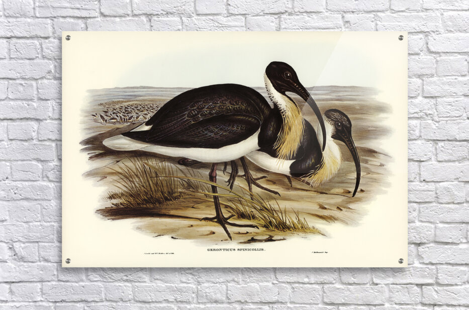 Straw-necked Ibis Geronticus spinicollis illustrated by Elizabeth Gould 1804–1841 for John Gould’s 1804-1881 Birds of Australia  Picture Frame Printing