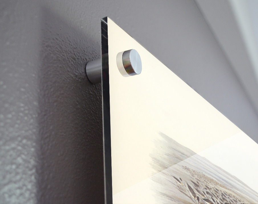Printed to the edge - Ready to hang - provided with 4 premium polished aluminum stand off ( wall screws and mounting hardware provided )