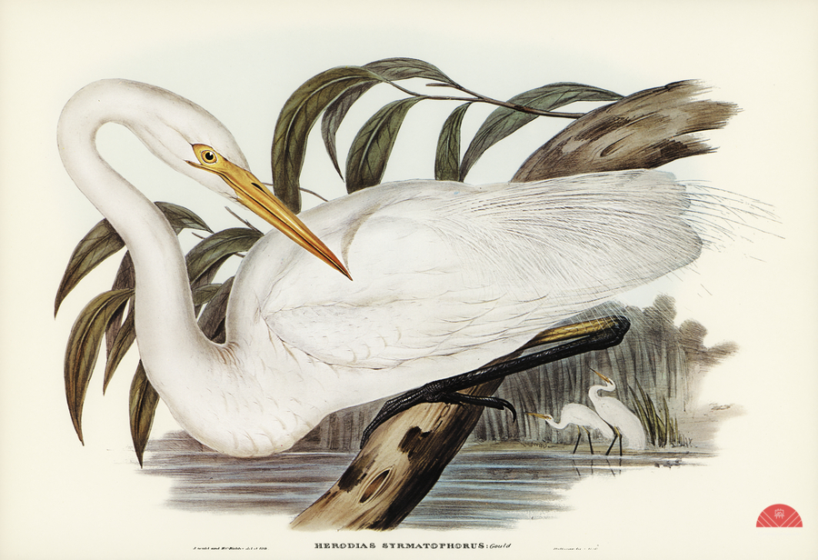 ABOUT THIS ARTWORK: AUSTRALIAN EGRET HRODIAS SYRMATOPHORUS ILLUSTRATED BY ELIZABETH GOULD 1804–1841 FOR JOHN GOULD’S 1804-1881 BIRDS OF AUSTRALIA