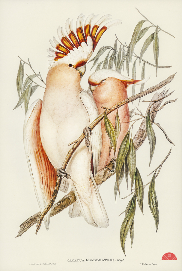 LEADBEATERS COCKATOO CACATUA LEADBEATERII ILLUSTRATED BY ELIZABETH GOULD 1804–1841 FOR JOHN GOULD’S 1804-1881 BIRDS OF AUSTRALIA