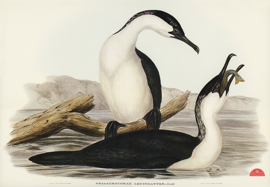 White-breasted Cormorant Phalacrocorax leucogaster illustrated by Elizabeth Gould 1804–1841 for John Gould’s 1804-1881 Birds of Australia
