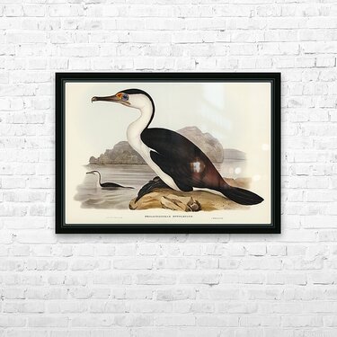 Pied Cormorant Phalacrocorax hypoleucus illustrated by Elizabeth Gould 1804–1841 for John Gould’s 1804-1881 Birds of Australia  Picture Frame Printing