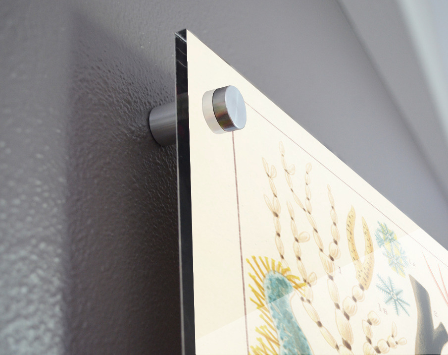 Printed to the edge - Ready to hang - provided with 4 premium polished aluminum stand off ( wall screws and mounting hardware provided ) We suggest a thicker 3/16" acrylic for any size over 42 inches to guarantee a straight acrylic, without curvature