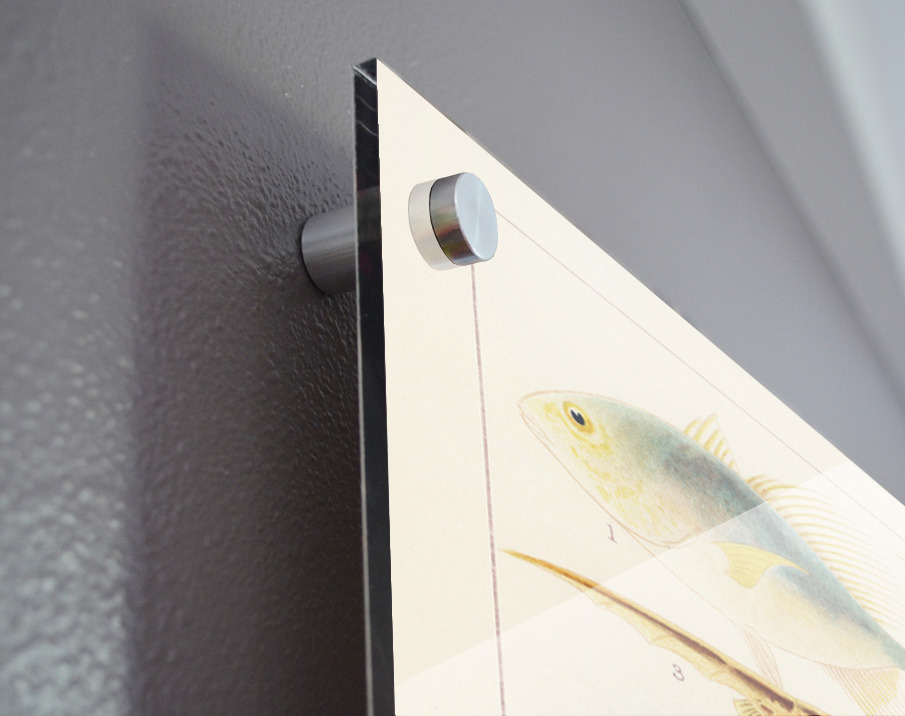 Printed to the edge - Ready to hang - provided with 4 premium polished aluminum stand off ( wall screws and mounting hardware provided ) We suggest a thicker 3/16" acrylic for any size over 42 inches to guarantee a straight acrylic, without curvature