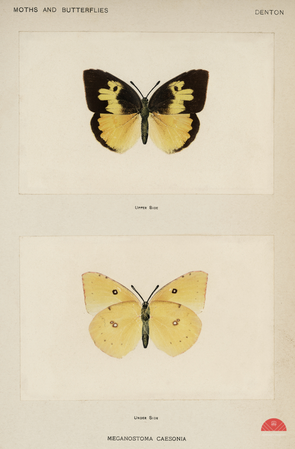 Southern Dogface Meganostoma Caesonia from Moths and butterflies of the United States 1900 by Sherman F. Denton 1856-1937.