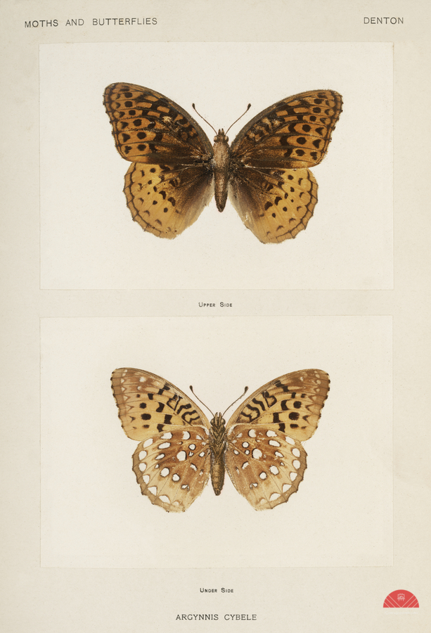 ABOUT THIS ARTWORK: GREAT SPANGLED FRITILLARY ARGYNNIS CYBELE FROM MOTHS AND BUTTERFLIES OF THE UNITED STATES 1900 BY SHERMAN F. DENTON 1856-1937.