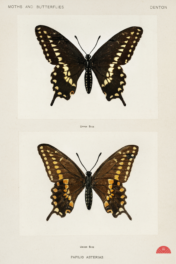 Black Swallowtail Papilio Asterias from Moths and butterflies of the United States 1900 by Sherman F. Denton 1856-1937.
