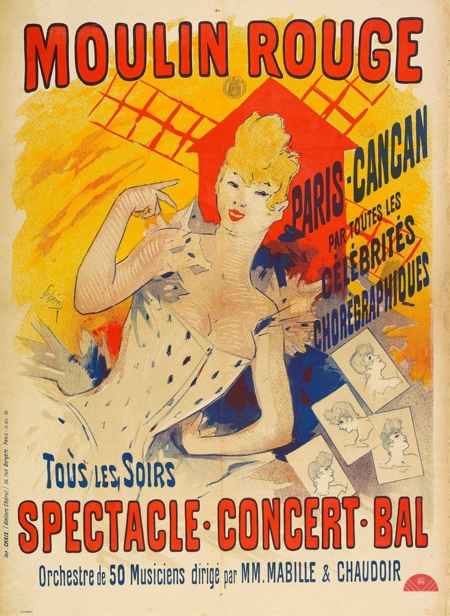 ABOUT THIS ARTWORK: MOULIN ROUGE PARIS-CANCAN 1890 POSTER BY JULES CHéRET